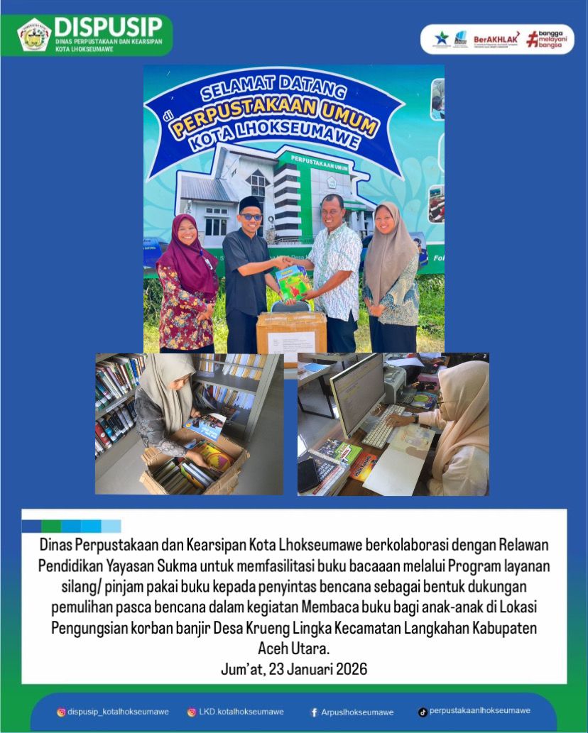 Dinas Perpustakaan dan Kearsipan Kota Lhokseumawe Berkolaborasi dengan Relawan Pendidikan Yayasan Sukma.